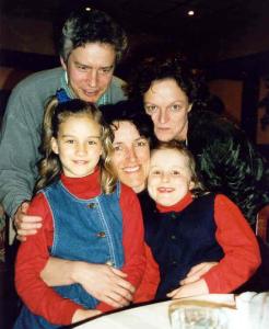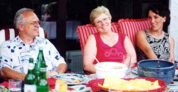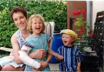 Trotz gebrochenen Armes können die Nichten und die Tante herzhaft lachen - Juli 1994 |